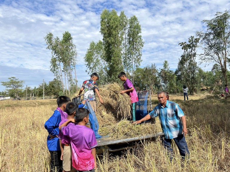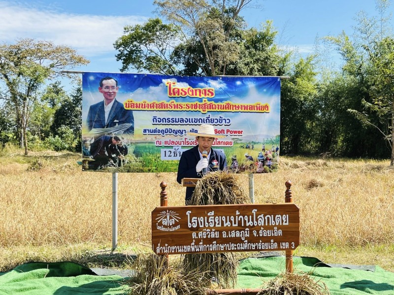 Gallery :: โครงการน้อมนำศาสตร์พระราชาสู่สถานศึกษาพอเพียง กิจกรรมลงแขกเกี่ยวข้าวสานต่อภูมิปัญญา พัฒนาสู่ soft power  ณ โรงเรียนบ้านโสกเตย ต.ศรีวิลัย อ.เสลภูมิ จ.ร้อยเอ็ด